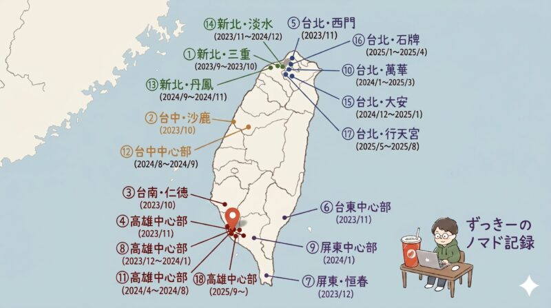 新企画始めます。その名も「台湾ノマド日記」。約2年半前から台湾中をノマドで渡り歩いてて、台北、新北、台中、台南、高雄、台東など本当にあらゆる場所に住み様々な体験をしてきました。これまでは台湾情報ブログとして、いわゆるガチガチのSEOに重点を…