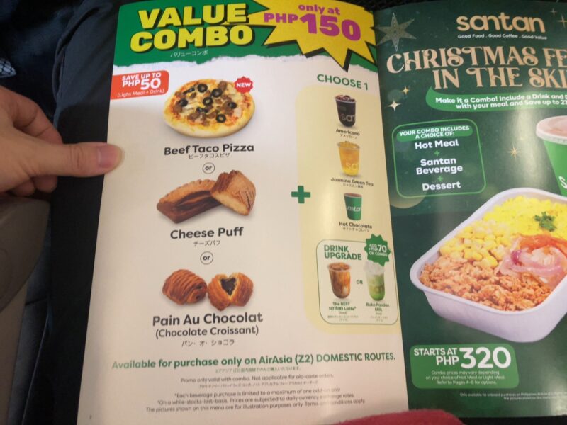 僕がエアアジアに搭乗した際はクリスマスシーズンということもあり、クリスマス限定のメニューも注目商品として提供されていました。