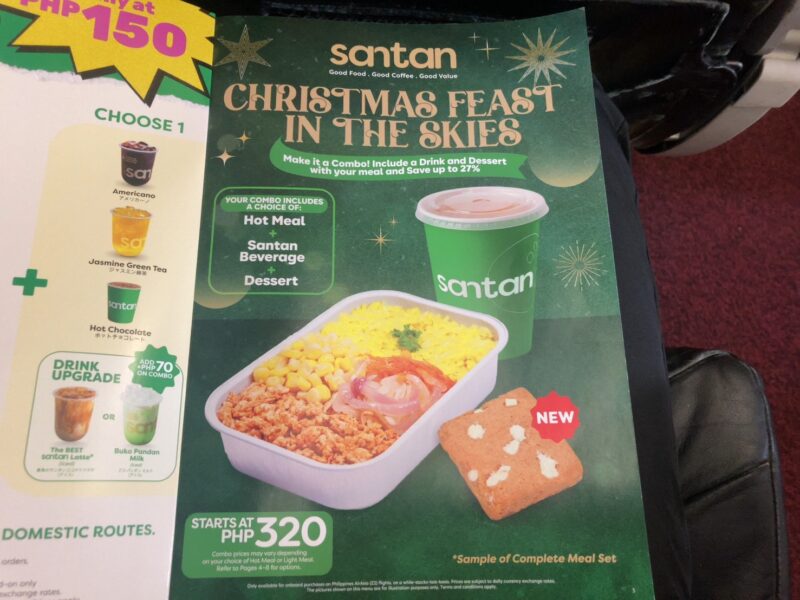 | クリスマス フィースト イン ザ スカイズ | コンボセット(ホットミール + サンタンビバレッジ + デザート) | 320ペソ | 約840円 |