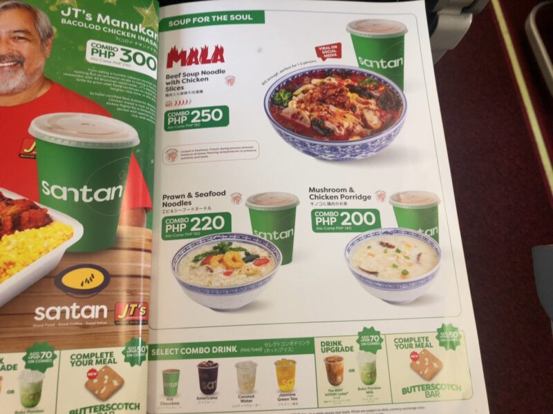 320ペソで温かいお食事、サンタンビバレッジ、デザートの3点が楽しめますよ。ドリンクとデザートを付けることで、最大27%もお得になる季節限定のセットです。