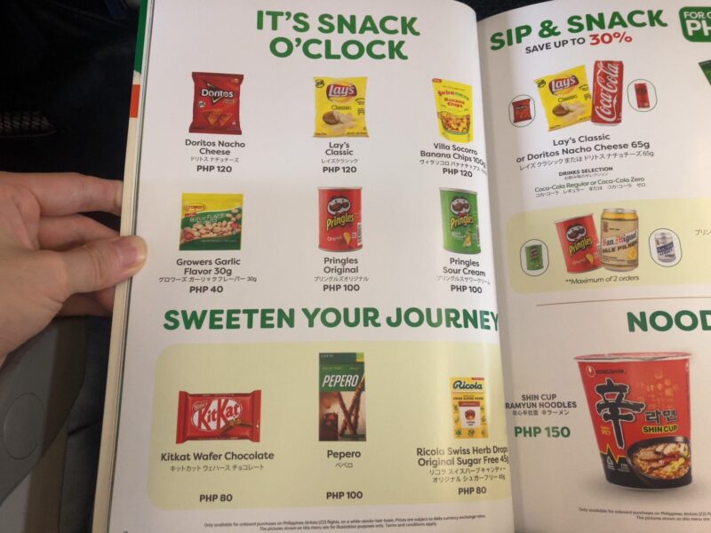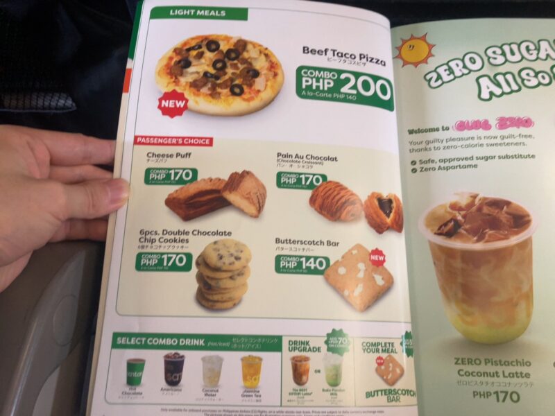 早速、エアアジア(フィリピン)の機内食メニューをご紹介していきます。日本円換算の料金も合わせてお伝えするので、ぜひ参考にしてみてくださいね。