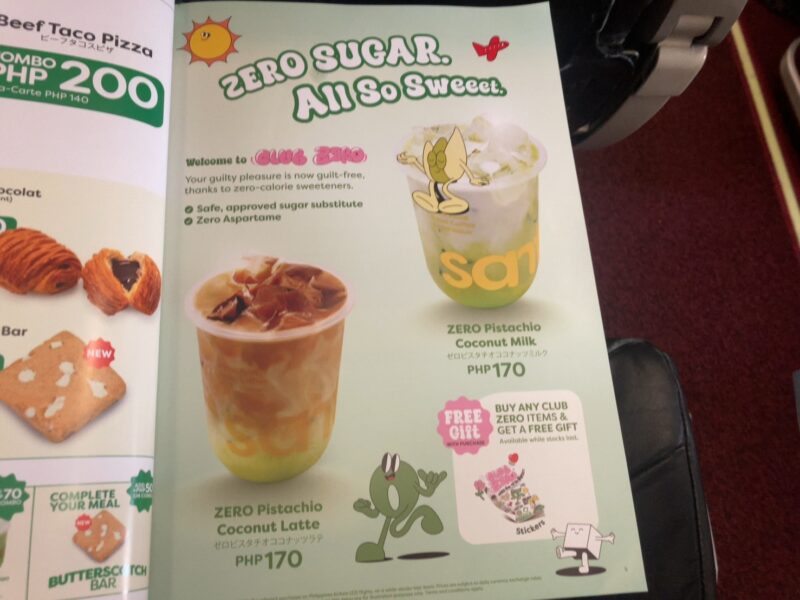 | ゼロ ピスタチオ ココナッツミルク | ゼロカロリー甘味料を使用したヘルシーなドリンク | 170ペソ | 約450円 |