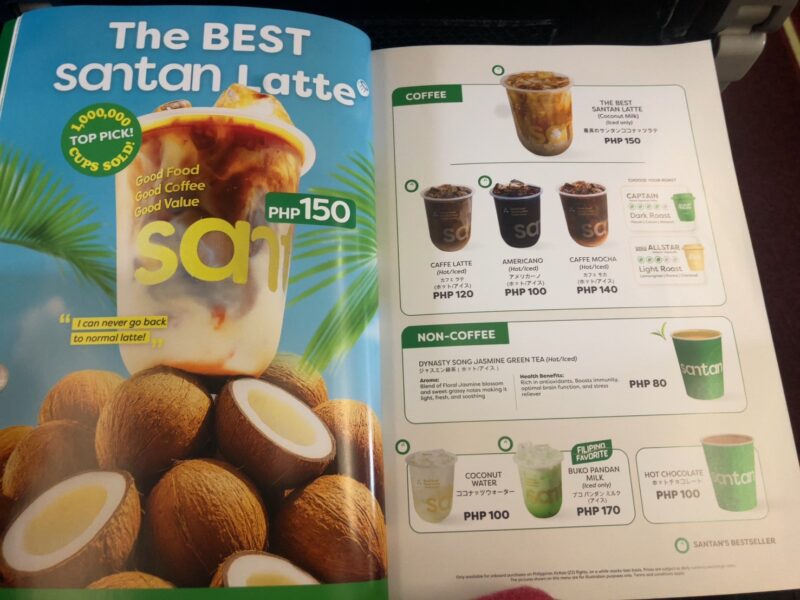 コーヒー系以外には、ジャスミン緑茶やココナッツウォーターのほか「フィリピンのお気に入り」と書かれたブコパンダンミルク、定番のホットチョコレートなども提供されています。