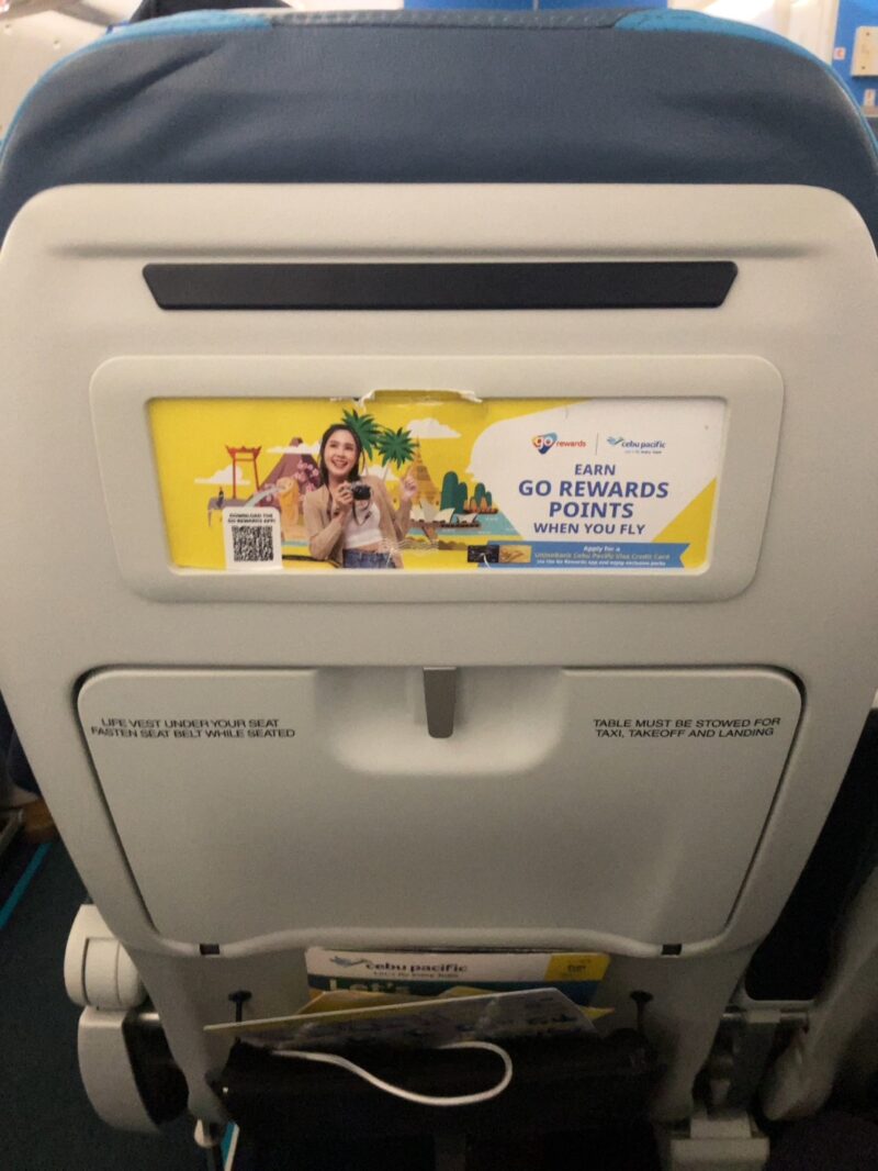 それが座席問題なんですが、僕が乗った座席の下には支柱みたいな棒があり、今まで様々なLCCに搭乗した中でもセブパシフィックは乗りにくかったです。「なんでこの設計!?」みたいな感じですね。(笑)