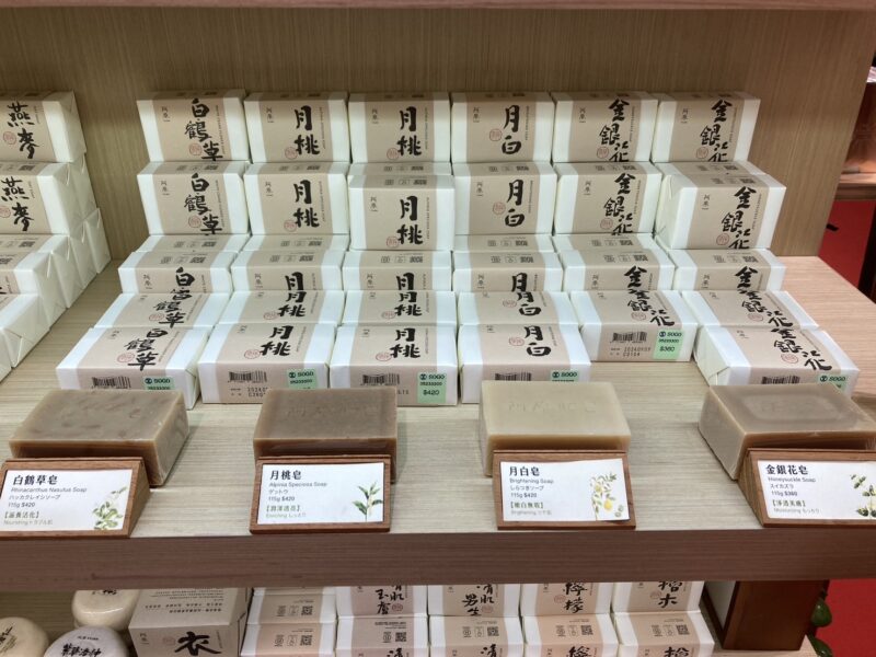 「月桃(ゲットウ)」や「白鶴草(ハッカクレイシ)」など、台湾ならではの植物成分を配合した石鹸がずらりと並び、保湿や肌荒れ防止など肌悩みに合わせて選べますよ。