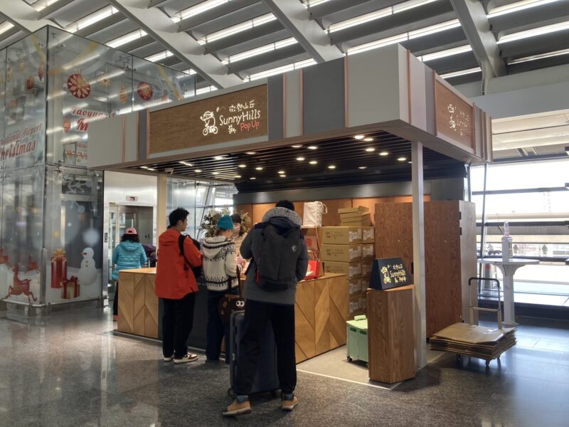 桃園国際空港にはポップアップストアが展開されており、旅の最後に購入できる利便性の高さもサニーヒルズが支持される理由の一つです。