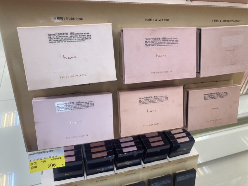 例えば、プチプラコスメとして日本でも知名度を上げている「heme」の人気商品「アイカラーパレッド」の価格を比べてみたところ、日本では「1980円」、台湾では「299元(約1495円)」と台湾の方が500円ほど安い結果となりました。