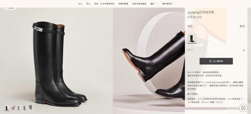 台湾の「ブーツ 《ジャンピング》ショート」は「96,500元(約482,500円)」