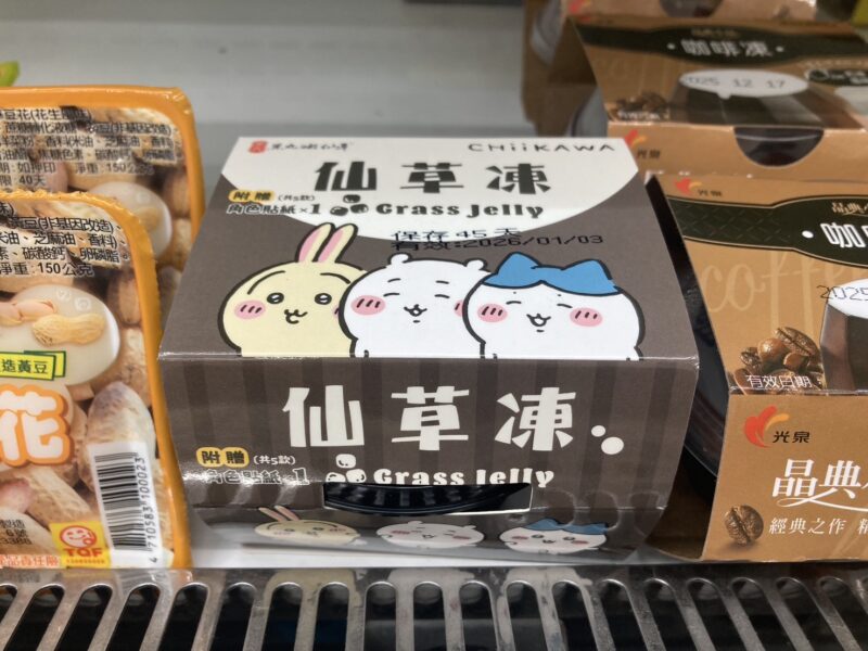 仙草ゼリーは台湾で非常にポピュラーなこともあり、コンビニではたくさんの商品が展開されていました。中には「ちいかわ」とコラボした商品も。