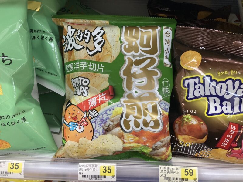 個人的に台湾限定のポテトチップスと言えば「波的多 蚵仔煎」。台湾夜市の名物「蚵仔煎(オアチェン)」という牡蠣オムレツ風味のロングセラー商品です。