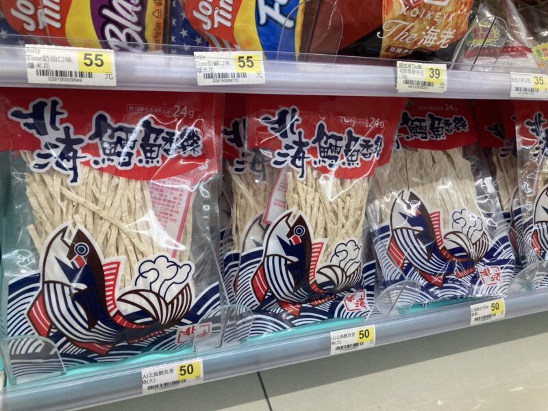 台湾で40年以上愛され続ける、まさに国民的おつまみスナック「北海鱈魚香絲(ベイハイシュエユーシャンスー)」です。