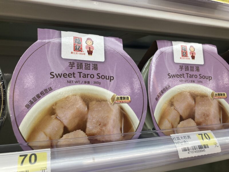 1969年創業、煮卵やお粥などの加工食品で現地の人々から厚い信頼を得ている老舗メーカー「福記」の「芋頭甜湯(タロイモスープ)」です。