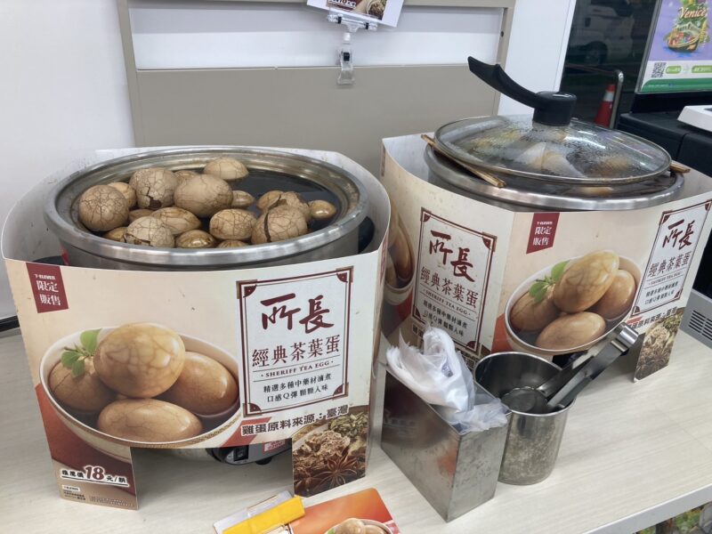 台湾のコンビニって入った瞬間独特な香りを感じるんですが、その臭いの正体がこの茶葉蛋でもあります。毎日食べても飽きない、台湾コンビニの定番グルメですね~。