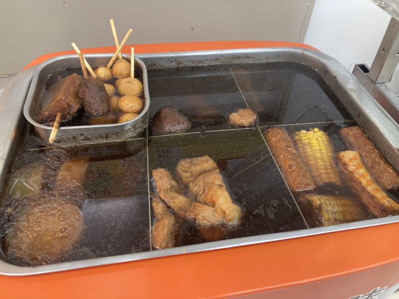 日本のおでんが出汁で煮るのに対し、こちらは醤油や漢方スパイスを効かせた特製の「滷汁(煮込みダレ)」で具材を濃厚に炊き上げています。