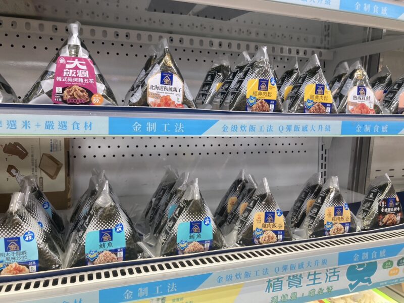 台湾のコンビニでは「おにぎり」も注目の商品。台湾のコンビニならではのオリジナルな具材を使ったおにぎりが多数販売され、眺めているだけでも楽しいですよ。