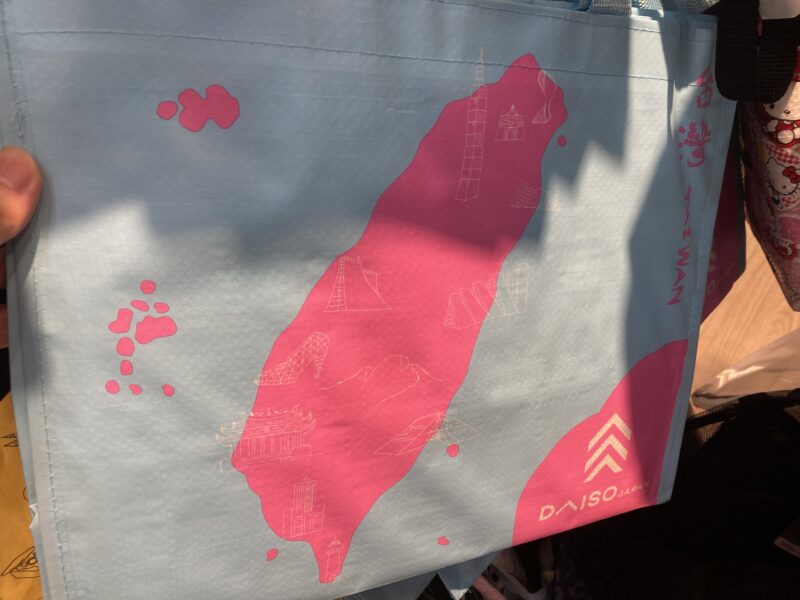 台湾のダイソーは99%日本のダイソーで販売されている商品を取り扱っている印象ですが、唯一(?)台湾限定商品とも言えるのがこのエコバッグなんです。
