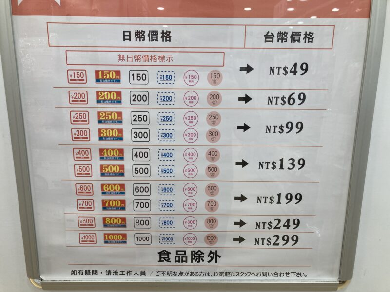 台湾のダイソーの値段は基本的に「49元」。現在は円安が進行しているため「1元=5.00円」ほどで、49元は「約245円」ぐらいの感覚です。