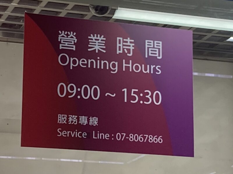 高雄空港の公式サイトでは「05:30~17:00」と記載されていたので、若干の誤差はありますが、概ねこの時間帯に営業していると考えておくと良いでしょう。(参照:外貨両替サービス「兆豊国際商業銀行」)