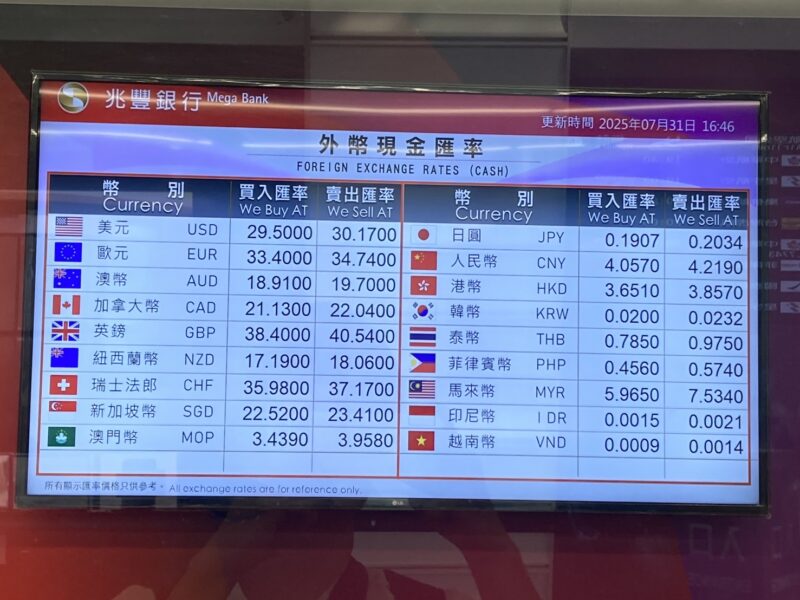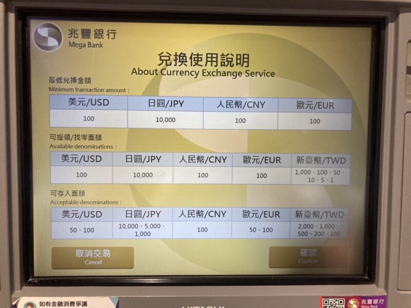 ちなみに、2025/7/31に桃園国際空港に訪れた際は、上記でご紹介した両替機では一時的なのか両替のサービスが使用不可になっており、キャッシングのみできる仕様になっていました。