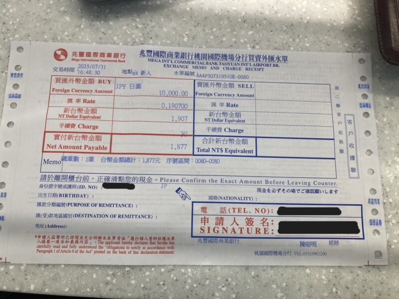 ここからは、桃園国際空港での両替の流れを解説していきます。実際に僕も桃園国際空港の兆豊銀行で両替してきたので、その時の流れをお伝えしていきますね。