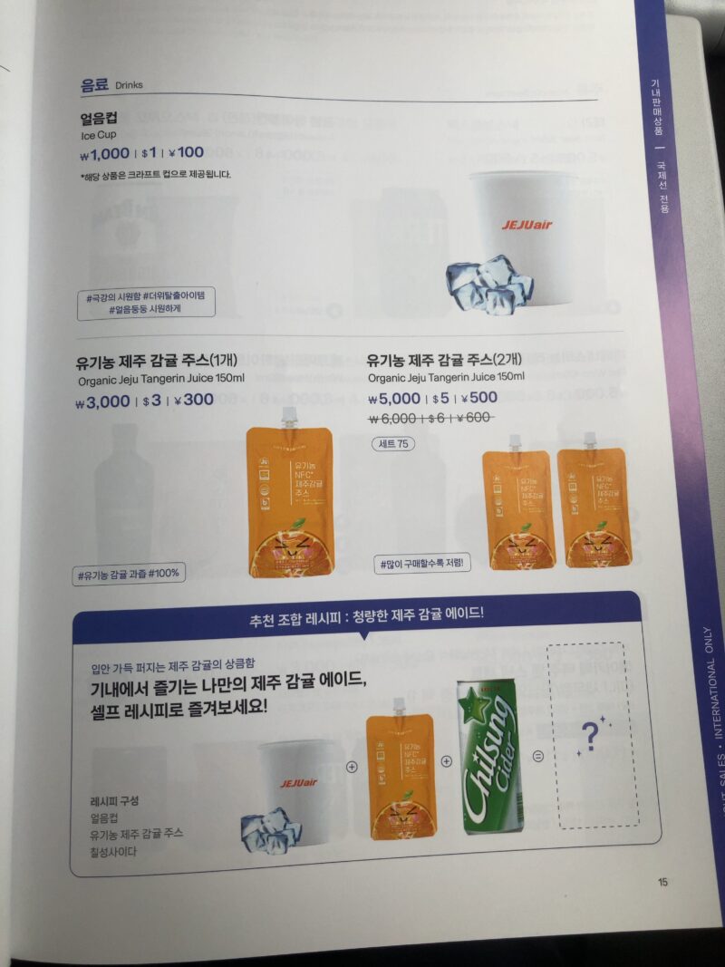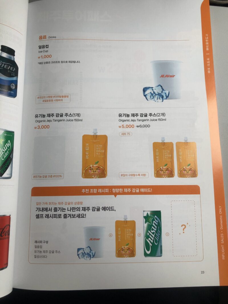 チェジュ航空オリジナルのオレンジジュースなんかも販売されていましたよ。