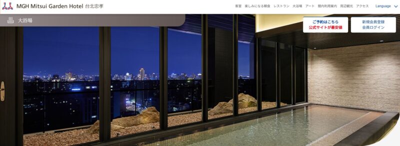 台北では非常に珍しい日本式大浴場が最上階に設置されているのも特徴。男性用と女性用に分かれた大浴場は、防水の金色モザイクタイルで彩られた豪華な空間で、入浴しながら台北の街並みを眺められる贅沢な体験が可能です。