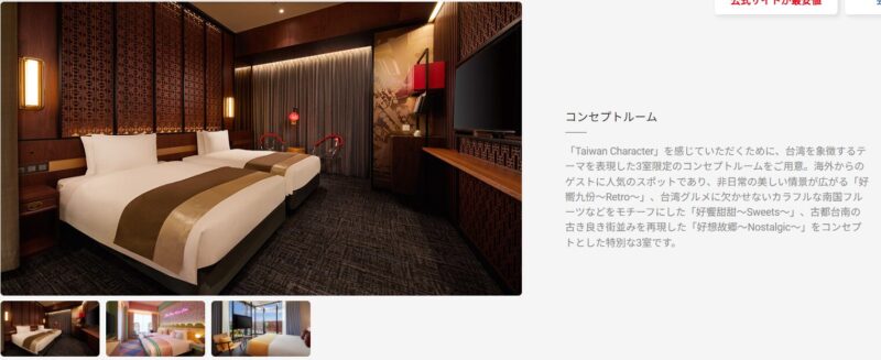 特に3室限定のコンセプトルームは、九份のレトロな街並みや台湾の南国フルーツ、台南の郷愁をテーマにデザインされているのも面白いですね。
