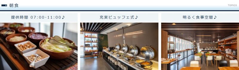 バラエティ豊かな朝食ビュッフェは洋食、中華、和食など多国籍メニューを楽しめ、特に専任シェフが作る目玉焼きやローストポーク、スパイシーなカレーが評判。
