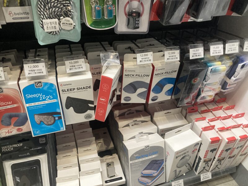 また、GS25でもトラベルグッズが豊富。ロックやアイマスク、ネックピローなど、持ち歩いてたら旅行をより快適に過ごせること間違いなしのグッズが並んでいます。