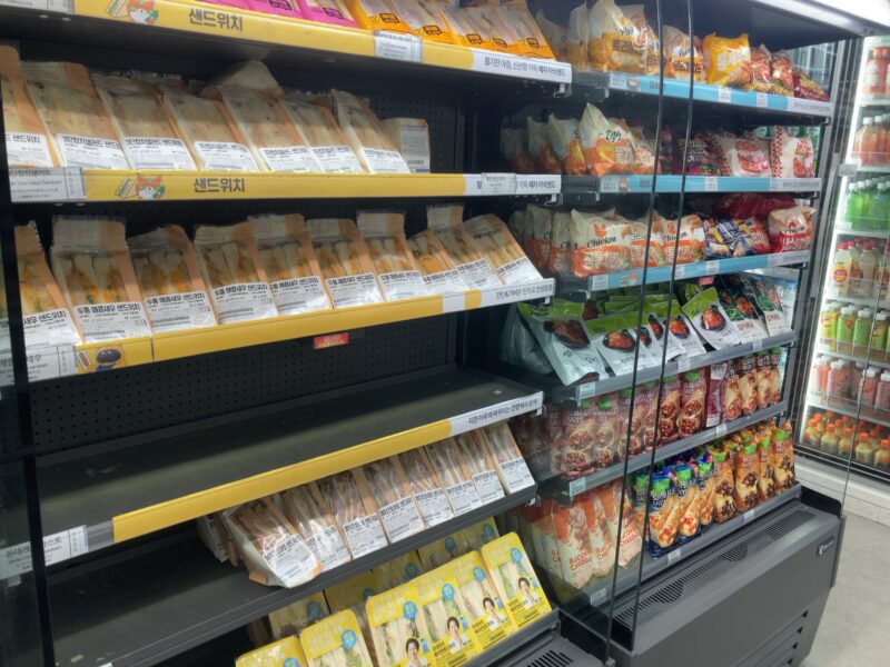 韓国グルメのおにぎり、サンドイッチ、カップ麺、ホットスナック類は韓国の地元民のほか、観光客にも人気ですよ。