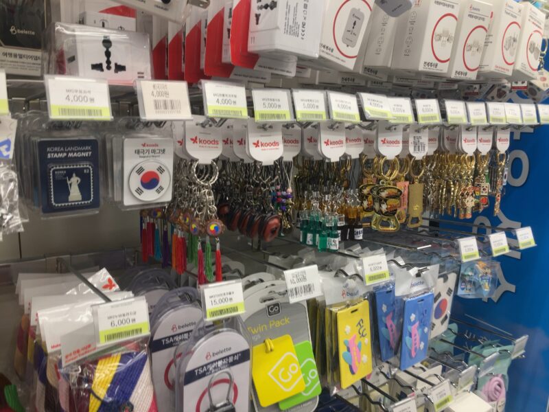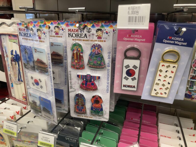 また、韓国雑貨お土産が多数販売されているのも見どころ。マグネットやマグカップ、エコバッグなどお土産コーナーも充実していましたよ。
