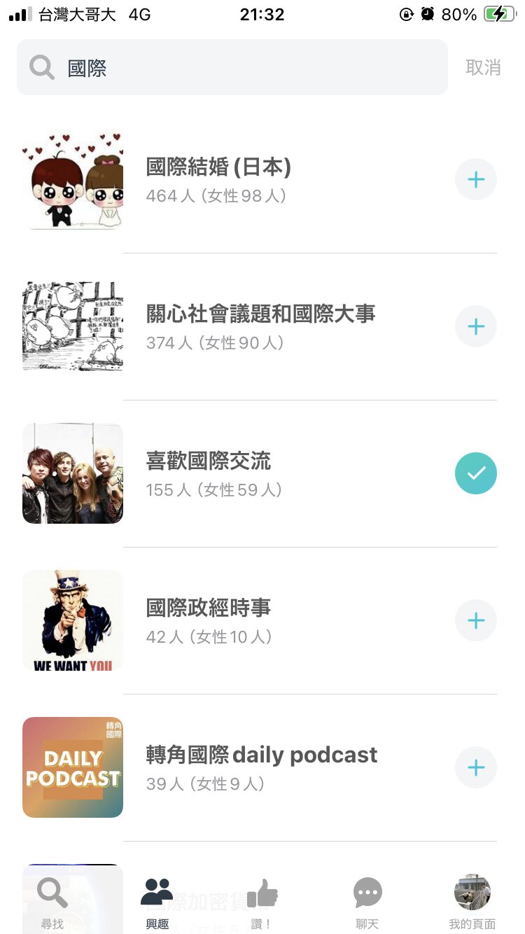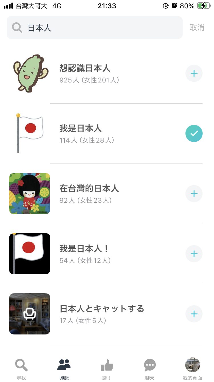 ちなみに、台湾では日本語が英語の次に人気の外国語なこともあり、Pairsのグループ機能で「日本人と出会いたい」みたいなコミュニティもありました。