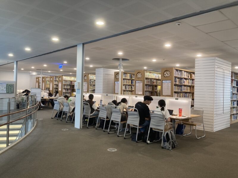 各階には読書スペースや作業のできる席がたくさん設けられており、主に勉強や仕事をしている人でいつも埋まっている印象ですね。
