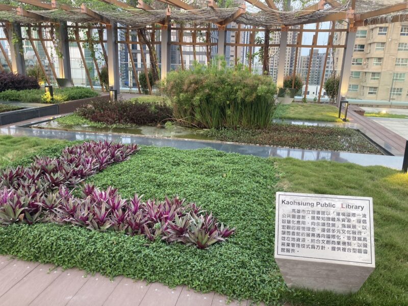 高雄市立図書館の一番の特徴と言えば「屋上」。屋上には庭園があったり眺めが良かったり、勉強や仕事のはざまに休憩するのになかなか良き空間なのです。