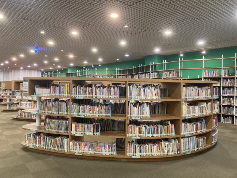 高雄市立図書館は建物自体が新しく、日当たりもかなり良い設計。展示や本を眺めながら館内を歩くだけでもワクワクする空間です。