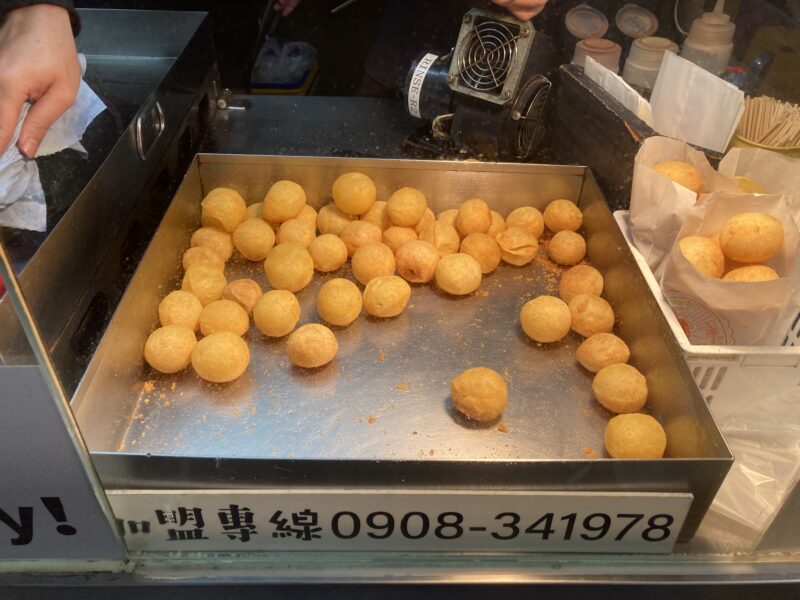 QQボールは台湾の屋台名物の一つ。原料に使っているさつまいもの優しい甘みがおいしく、モチモチとした食感もたまりません。どの夜市でも必ず見かけるぐらいの定番おやつです。