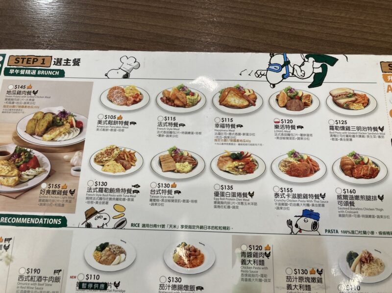 価格帯は110元〜190元(約550円~約950円)程度で、ブランチセットよりも専門的な食事が楽しめます。