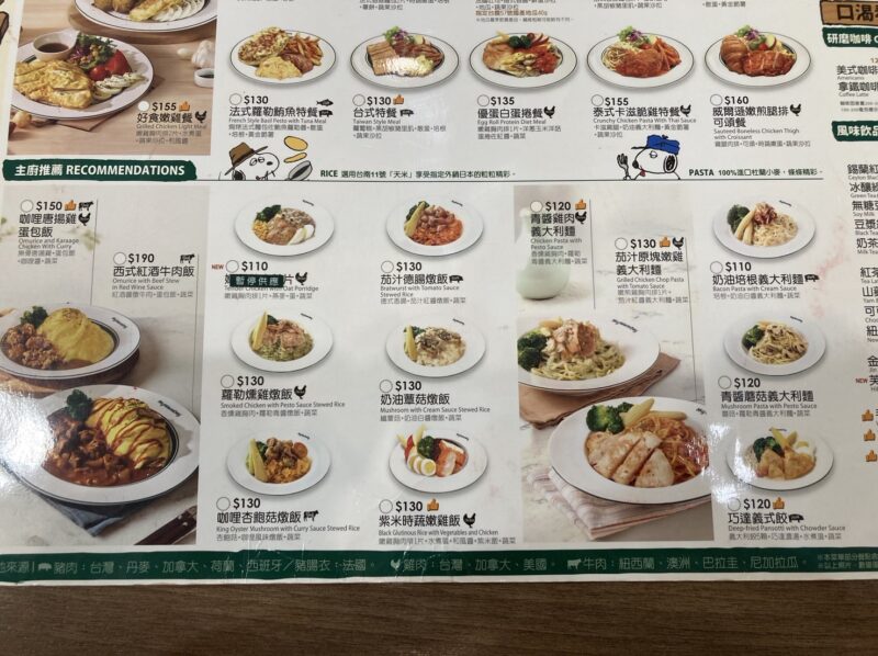 また、洋風の食事をメインとした「シェフのおすすめ(主廚推薦)」特集なんかもあり、ここではパスタとリゾット/ごはん物のメニューが充実しています。