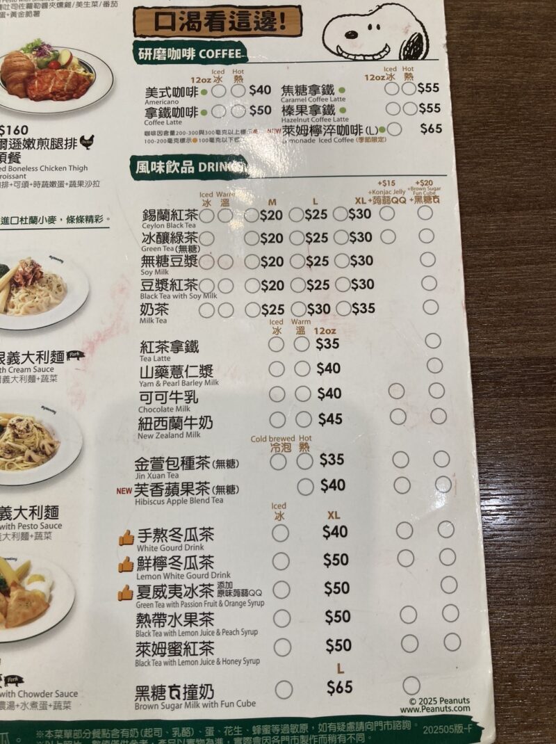麥味登のドリンクメニューはコーヒー系や紅茶、豆乳などバラエティ豊富なのも特徴。