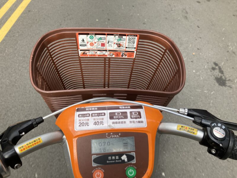 あとYouBikeにはオレンジの電動自転車もあるんですが、こちらは少しお金がかかります。といっても初乗り30分で10元(約50円)ぐらいなんですが。
