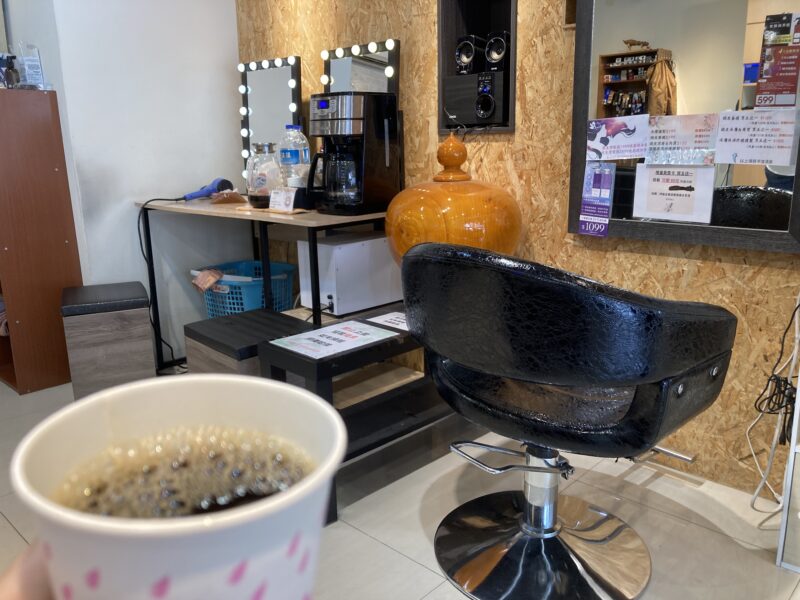 待ち時間にはコーヒーもいただけて「100元カットここまでしてくれるの!」という驚き。(笑)