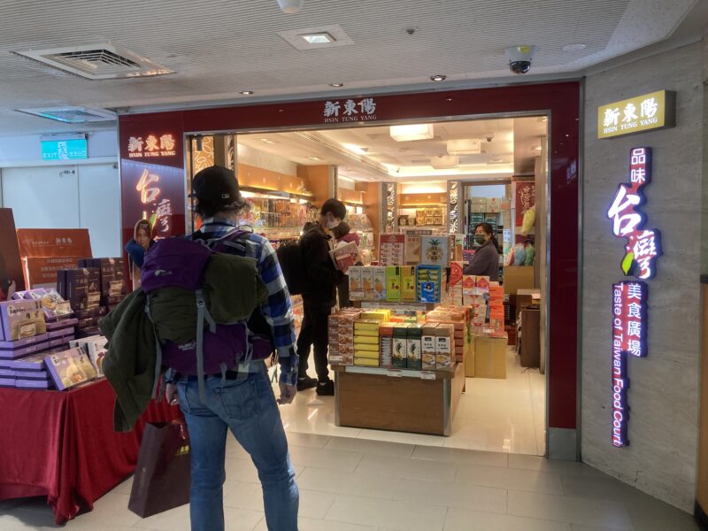 右手に「鼎泰豊」、左手に「スターバックス」が見える中、通路をはさんで左奥すぐにパイナップルケーキのお土産屋さんがあります。
