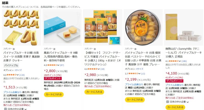 ちなみに、パイナップルケーキはAmazonや楽天でも買えます
