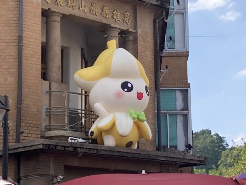 バナナをモチーフにしたキャラクターも、旗山老街のあらゆる場所に出没していました。