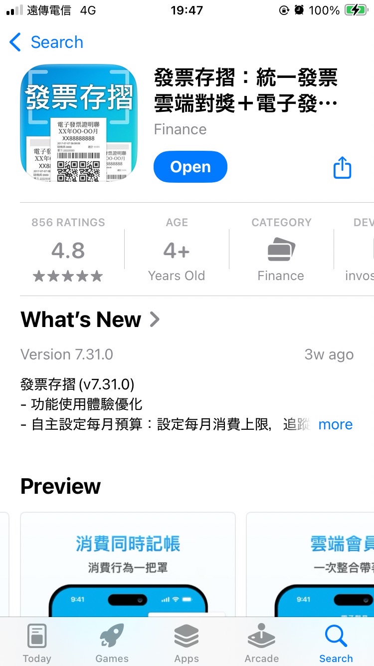 まずはアプリストアで「發票存摺」を探し、アプリをダウンロード・起動させましょう。もちろん無料なのでご安心くださいね。