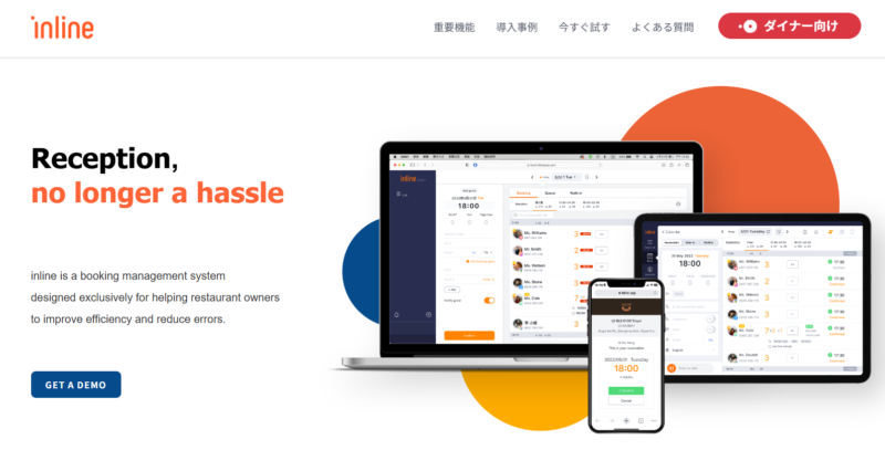 「inline」や「EZTABLE」はレストランや飲食店向けの予約・テーブル管理システム。