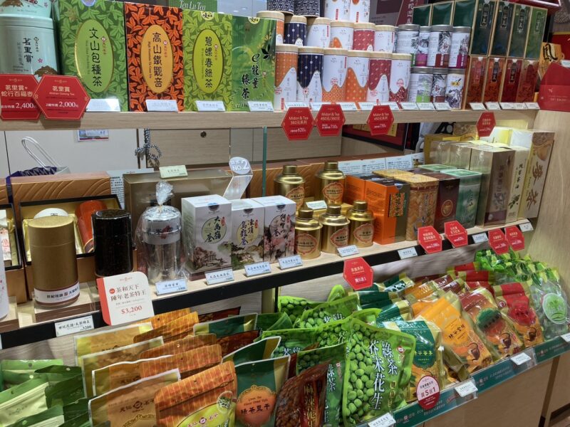 店内には台湾茶の定番である「凍頂烏龍茶」や「文山包種茶」「高山鉄観音」「碧螺春緑茶」など本格的な茶葉が美しい缶や箱入りで陳列されており、お土産としても非常に人気があるんですよ。
