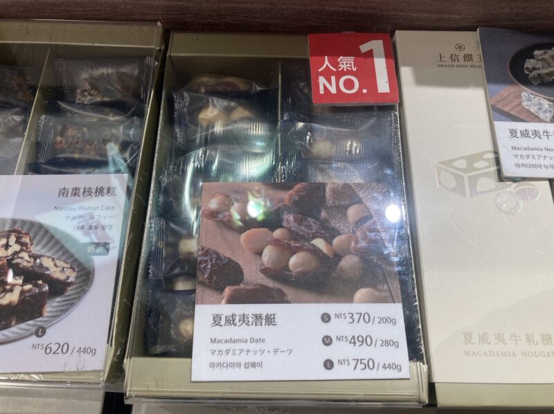 近年日本でも知名度が上がっている上信饌玉の「マカデミアデーツ」も台湾の高級お土産の一つ。