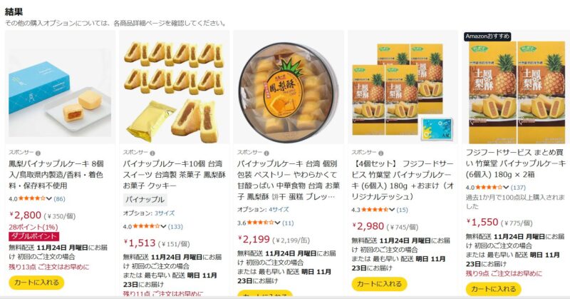 上記で紹介した「台湾のお土産にぴったりなお菓子」の中で、Amazonで人気の商品を中心にピックアップ!ぜひご参考ください。