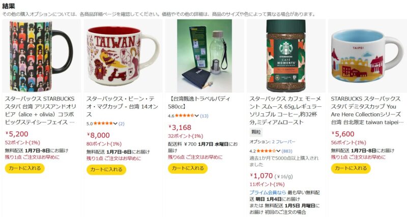 Amazonや楽天などでは、以下のように台湾スタバ限定のマグカップやタンブラーなどが見つけられますよ。